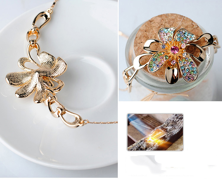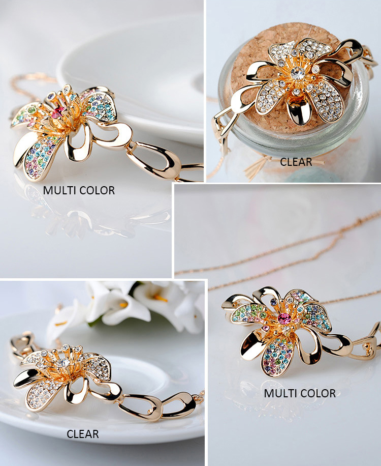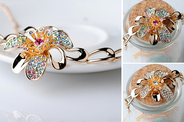 Multi Color Crystal Rhinestone Floral Petal Handmade Pendant Necklace Premium Gemstone Necklace Gold Necklace for Women&Girls